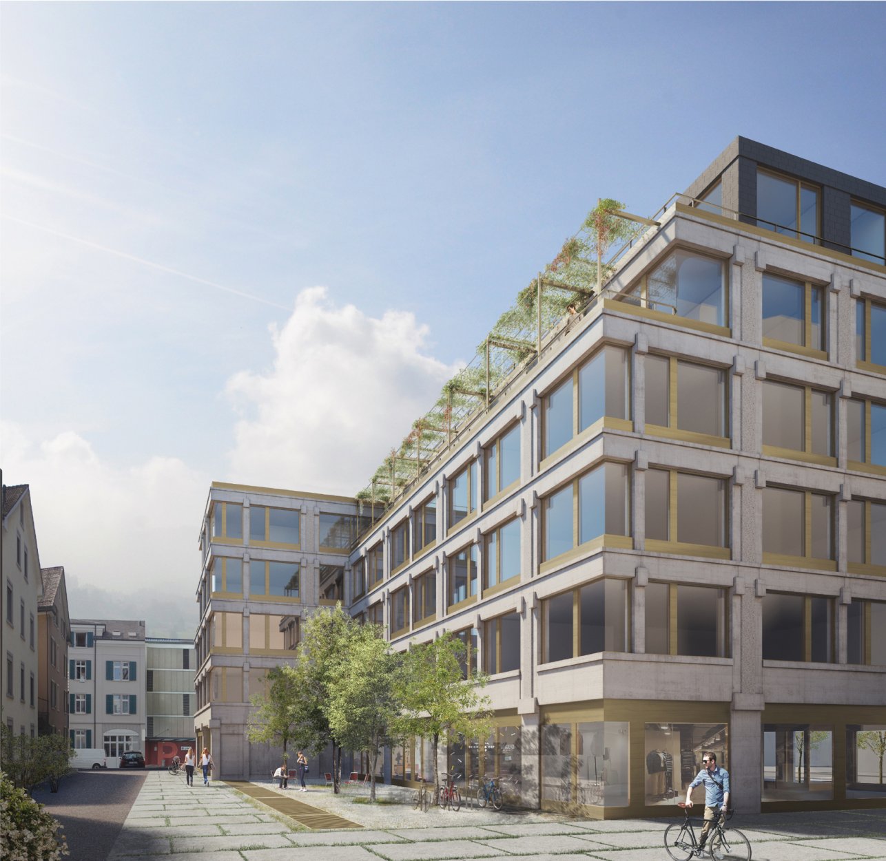 Das Architekturbüro «Neff Neumann» entwirft ein Gebäude, das die städtebauliche Ecke betont und die Strassenräume klar definiert. Markante Eckrisalite heben das Hauptvolumen hervor und schaffen eine starke, repräsentative Verbindung zur Dufourstrasse. Ein Materialwechsel im Dachgeschoss verstärkt diese Hierarchie und betont die Ecke zusätzlich. Die volumetrische Abtreppung entlang der Hallenstrasse reflektiert die Bedeutung des Raumes, während die Staffelung des Hauptvolumens die Massstäblichkeit des Hofs berücksichtigt und eine skulpturale Gesamtform anstrebt. Das Siegerprojekt «Maison Dufour» bietet durch seine subtile städtebauliche Integration und den sorgfältigen architektonischen Ausdruck einen bedeutenden Mehrwert für das Quartier.